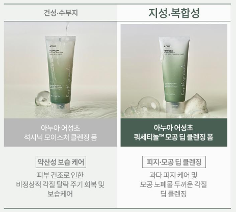 피부 타입별로 클렌징폼이 두 가지 중에 선택할 수 있습니다.